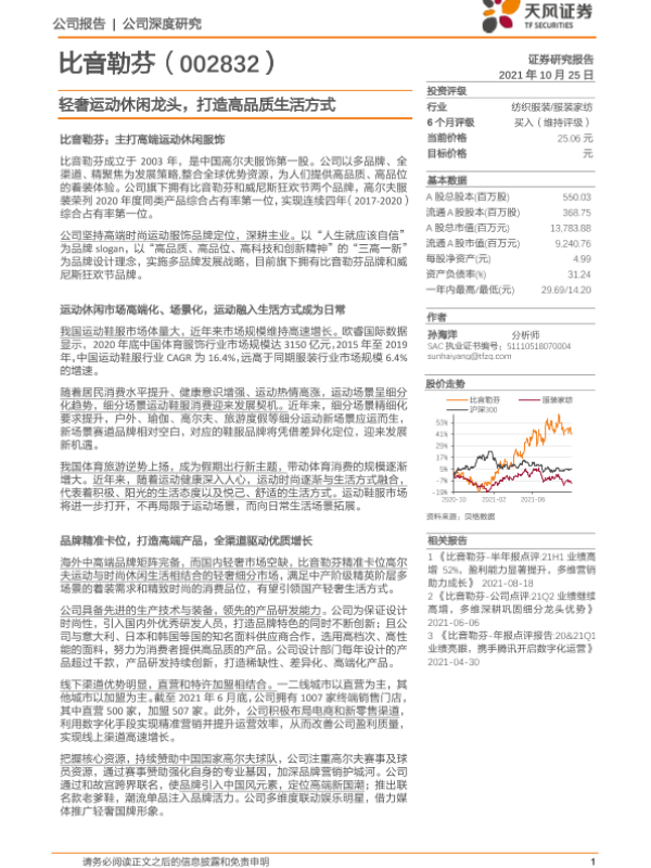 【天风证券】【20211025】比音勒芬-轻奢运动休闲龙头,打造高品质生活方式-36页 行业研究