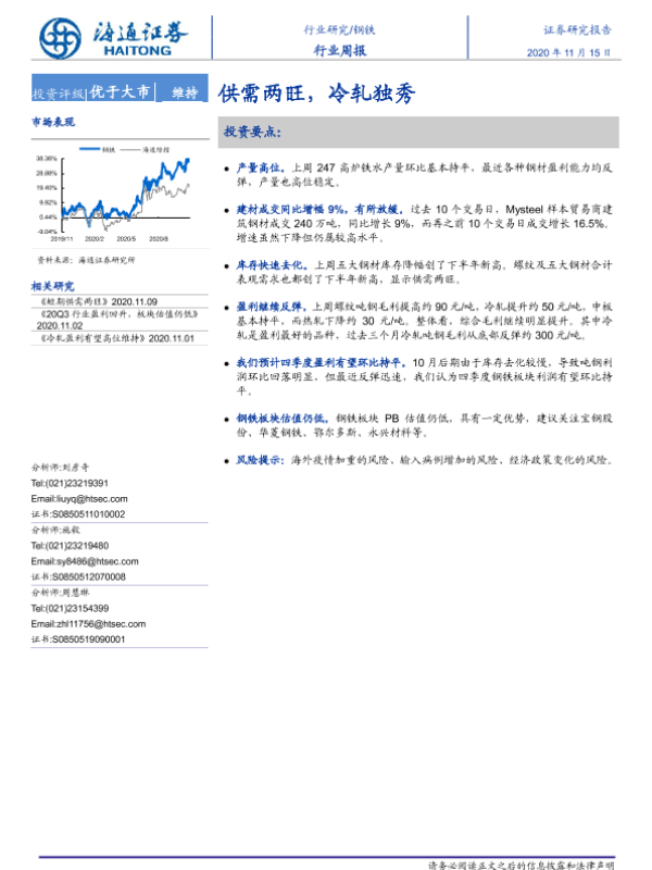 【海通证券】【20201115】20201115-海通证券-钢铁行业周报:供需两旺,冷轧独秀-13页 行业研究