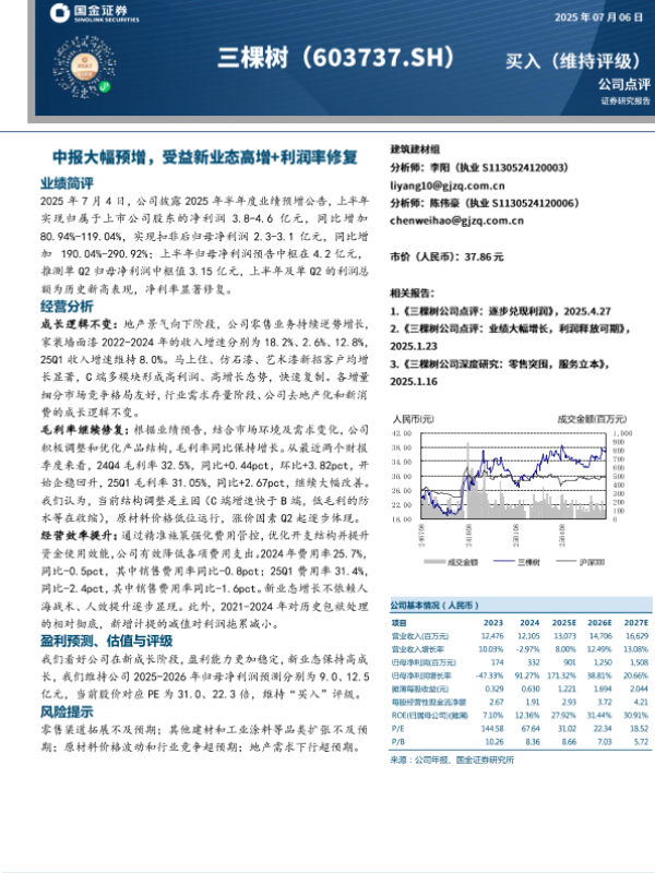 【国金证券】【20250706】三棵树-603737.SH-中报大幅预增_受益新业态高增+利润率修复-4页 公司研究
