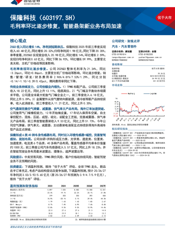 【国信证券】【202510】保隆科技(603197.SH)毛利率环比逐步修复,智能悬架新业务布局加速-12页 证券期货研究报告