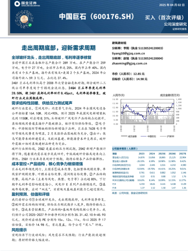 【国金证券】【20250402】中国巨石走出周期底部,迎新需求周期-17页 公司研究