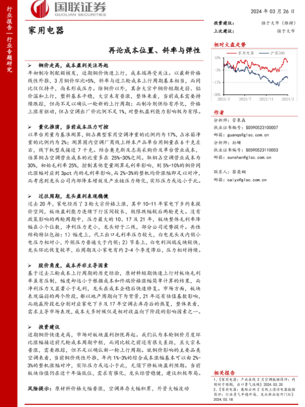 【国联证券】【20240326】家用电器行业专题研究:再论成本位置、斜率与弹性-17页 行业研究