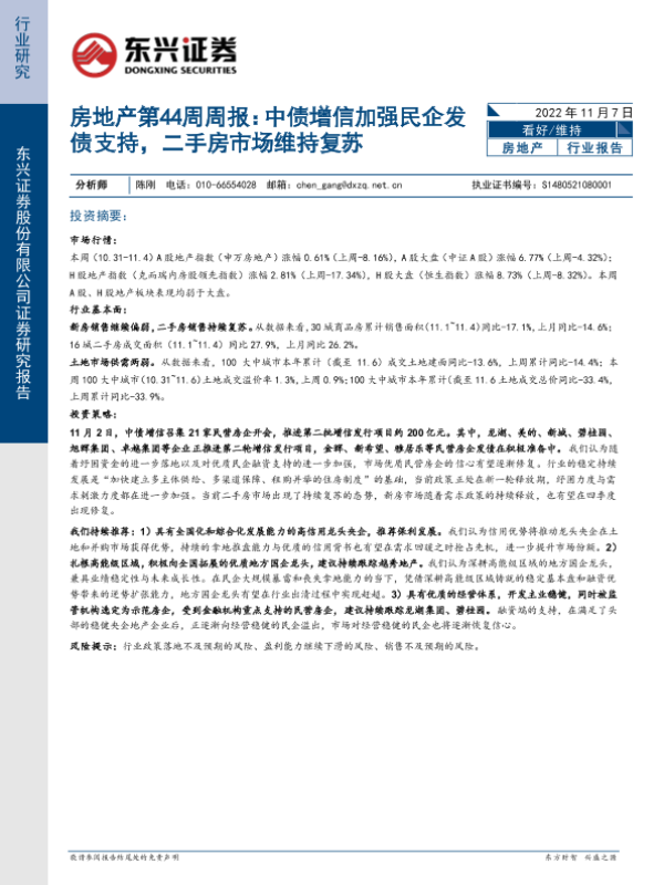 【东兴证券】【20221107】房地产第44周周报:中债增信加强民企发债支持,二手房市场维持复苏-21页 行业研究