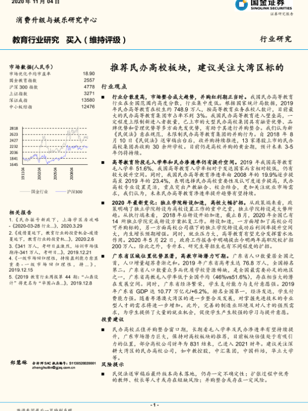 【国金证券】【20201104】20201104-国金证券-教育行业研究:推荐民办高校板块,建议关注大湾区标的-6页 行业研究