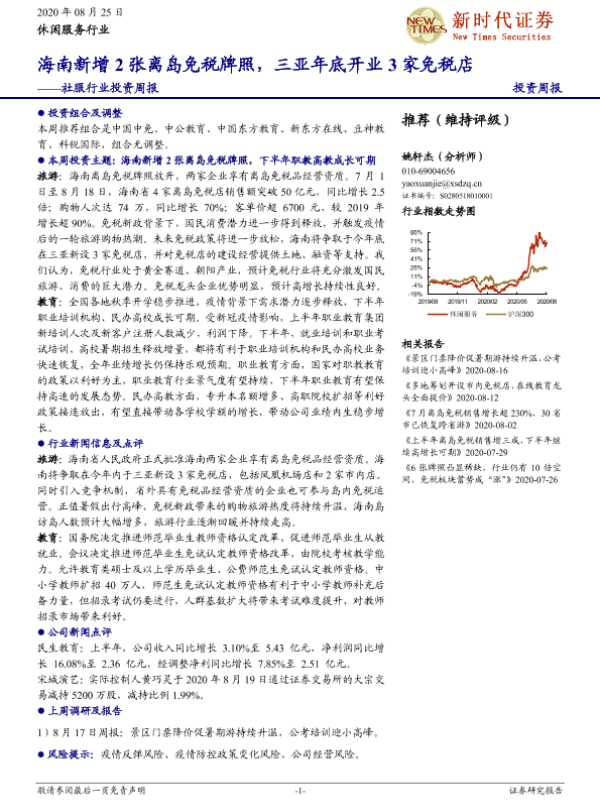 【新时代证券】【20200825】社服行业投资周报:海南新增2张离岛免税牌照,三亚年底开业3家免税店-18页 行业研究