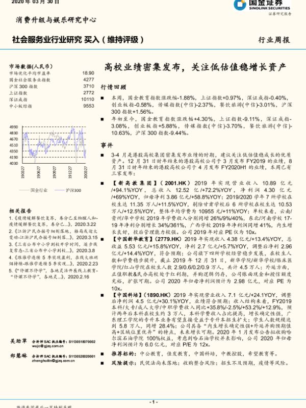 【国金证券】【20200330】社会服务业行业研究:高校业绩密集发布,关注低估值稳增长资产-8页 行业研究