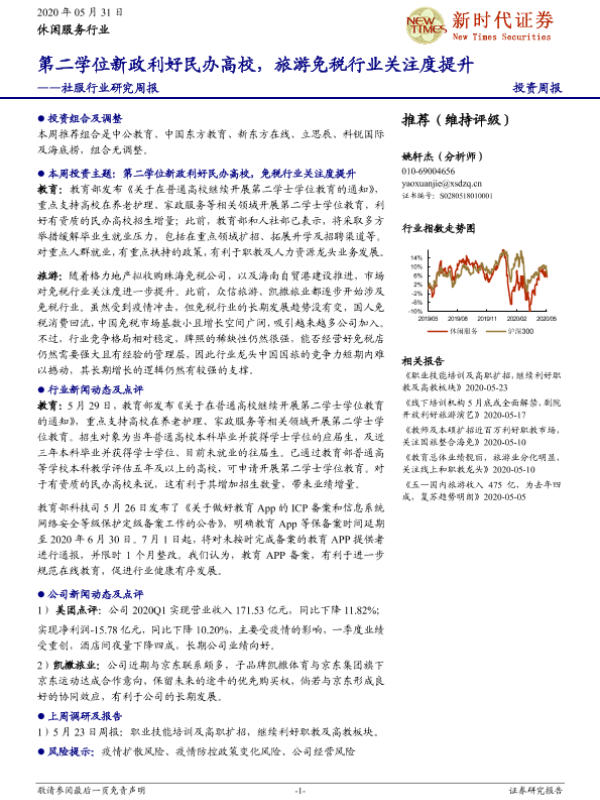 【新时代证券】【20200531】社服行业研究周报:第二学位新政利好民办高校,旅游免税行业关注度提升-19页 行业研究