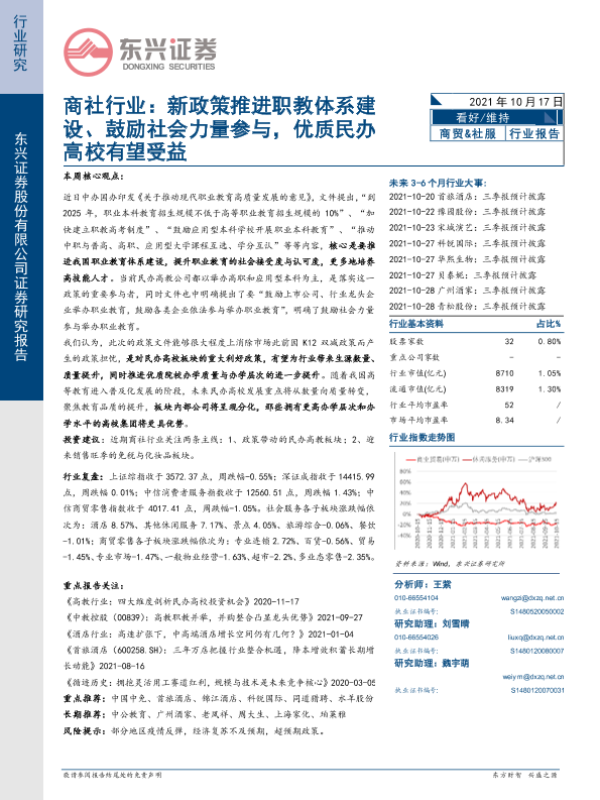 【东兴证券】【20211017】新政策推进职教体系建设、鼓励社会力量参与,优质民办高校有望受益-10页 行业研究