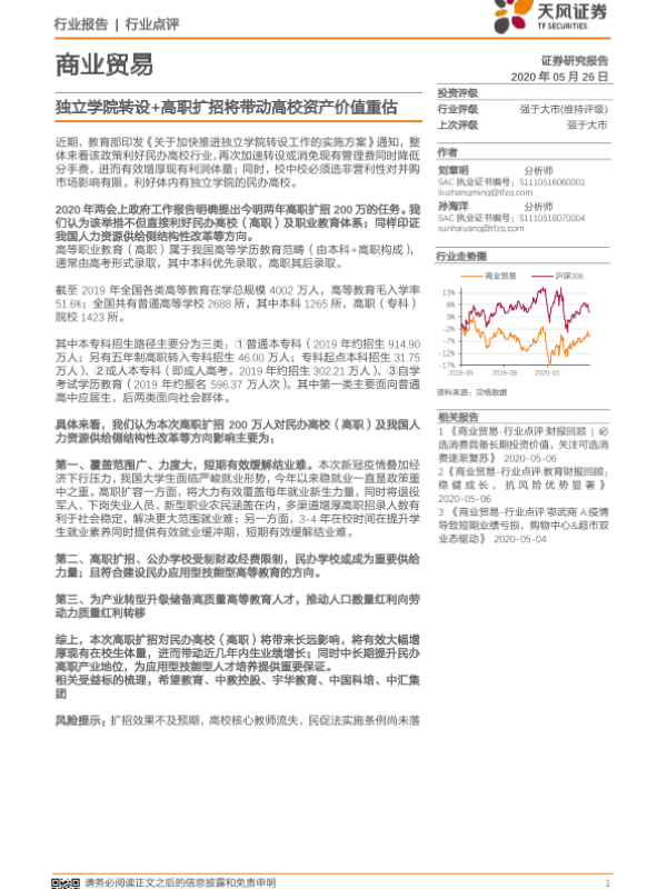 【天风证券】【20200526】独立学院转设+高职扩招将带动高校资产价值重估-3页 行业研究