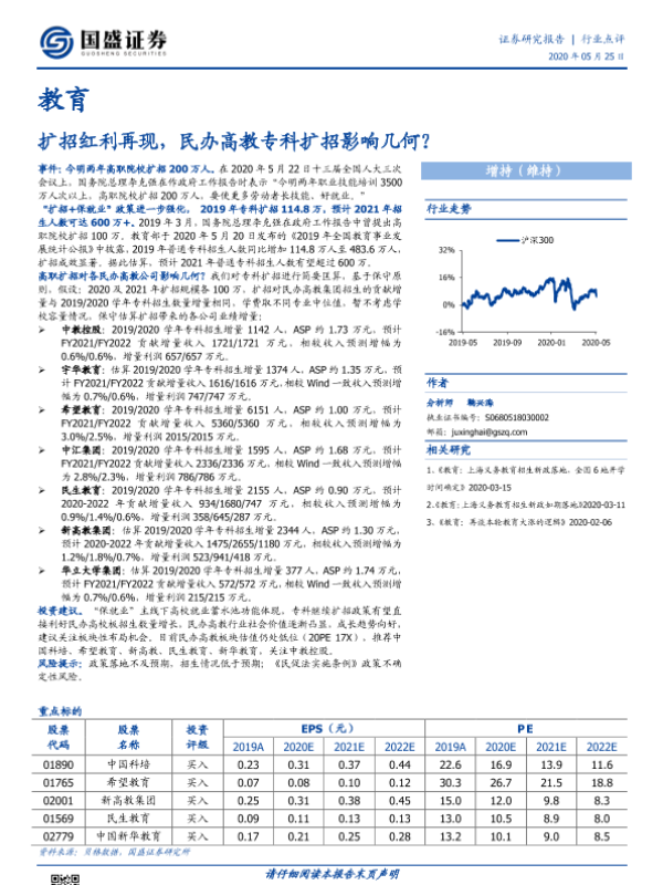 【国盛证券】【20200525】教育行业点评:扩招红利再现,民办高教专科扩招影响几何?-3页 行业研究