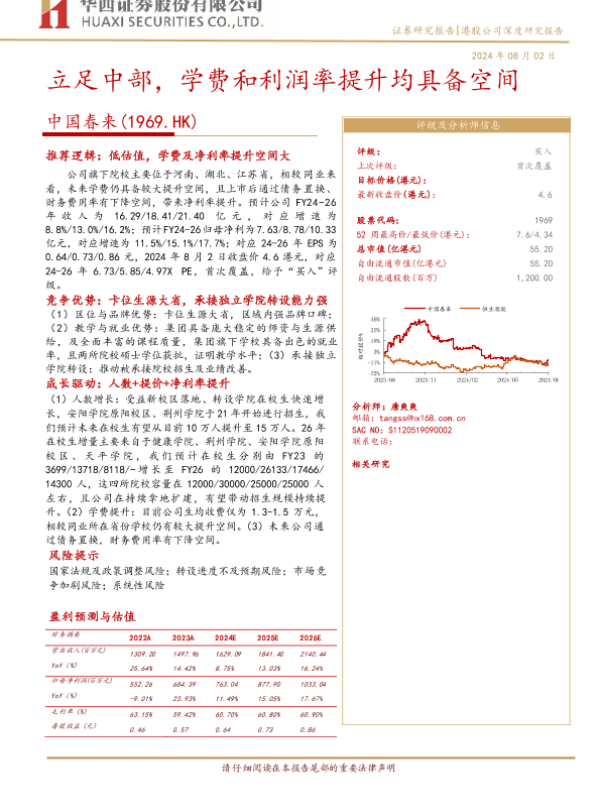 【华西证券】【20240802】中国春来(1969.HK)立足中部,学费和利润率提升均具备空间-29页 行业研究