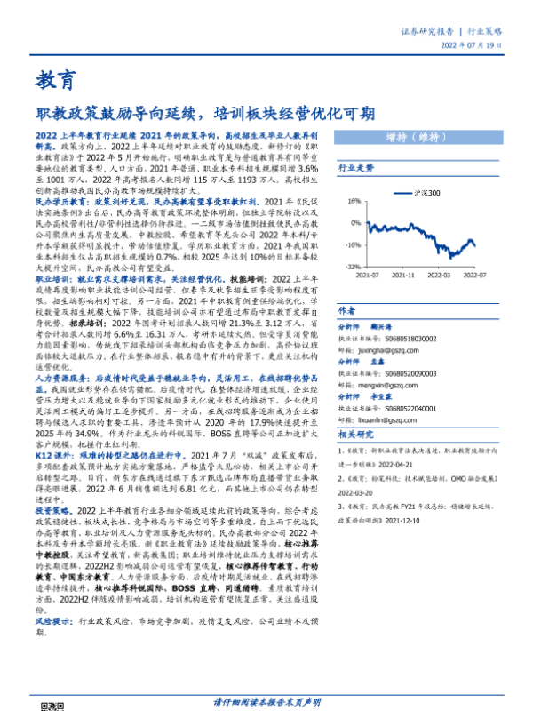 【国盛证券】【20220719】教育行业策略:职教政策鼓励导向延续,培训板块经营优化可期-43页 行业研究