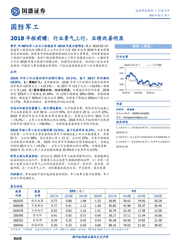 【国盛证券】【20190218】国防军工2018年报前瞻:行业景气上行,业绩改善明显-10页 行业研究