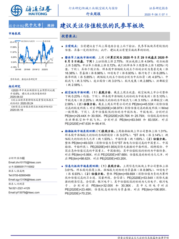 【海通证券】【20200607】20200607-海通证券-航空航天与国防行业周报:建议关注估值较低的民参军板块-4页 行业研究