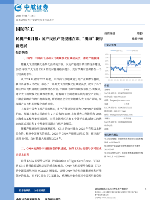 【中航证券】【20250312】民机产业月报:国产民机产能提速在即,“出海”获得新进展-23页 证券期货研究报告
