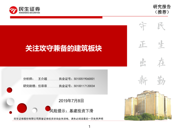 【民生证券】【20190708】关注攻守兼备的建筑板块-7页 行业研究