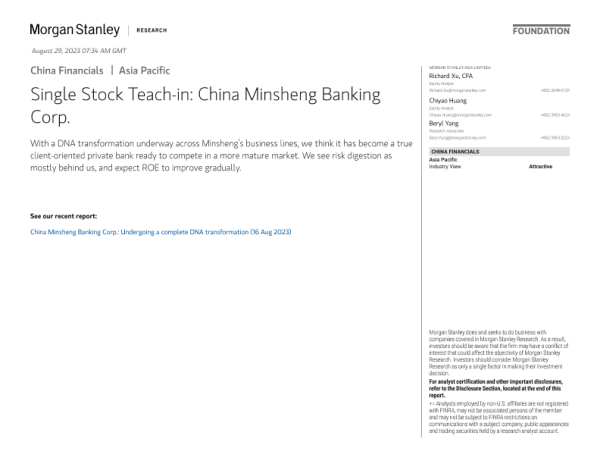 【Morgan Stanley】【20230816】Single Stock Teach-in China Minsheng Banking Corp.-27页 行业研究
