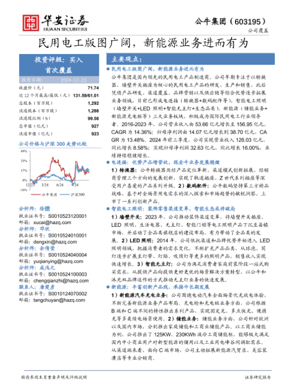 【华安证券】【20241223】公牛集团-民用电工版图广阔,新能源业务进而有为-31页 行业研究