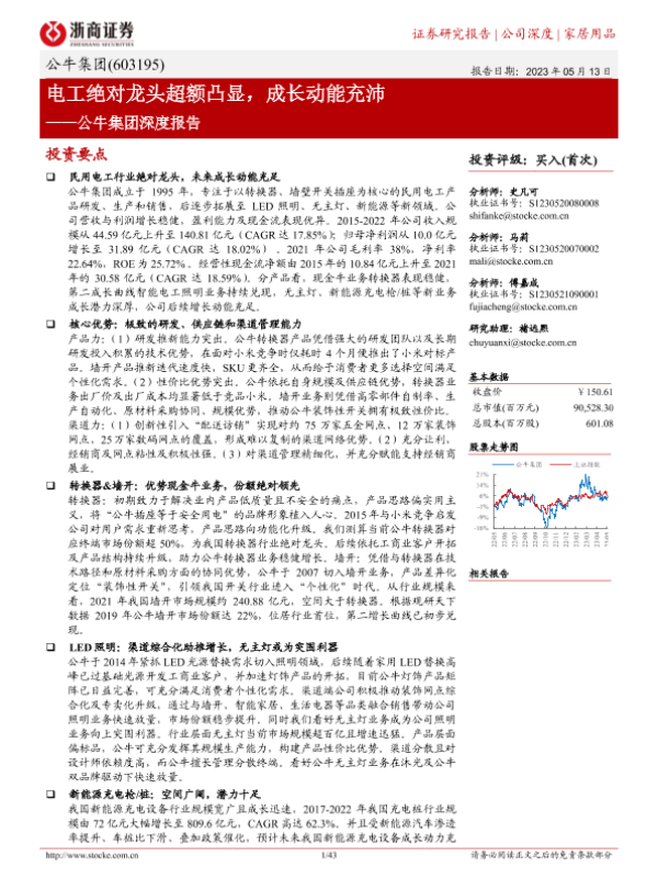 【浙商证券】【20230513】公牛集团深度报告:电工绝对龙头超额凸显,成长动能充沛-43页 行业研究