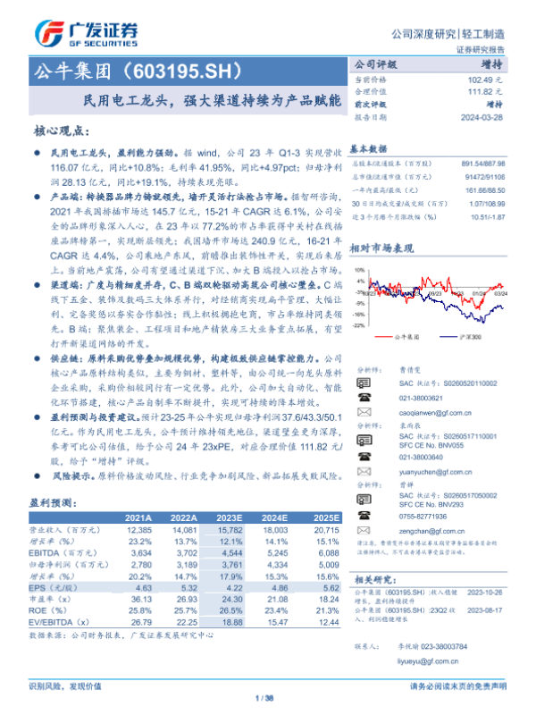 【广发证券】【20240328】公牛集团-603195.SH-民用电工龙头,强大渠道持续为产品赋能-38页 行业研究