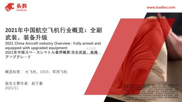 【头豹研究院】【2021】2021年中国航空飞机行业概览:全副武装,装备升级-43页 行业研究