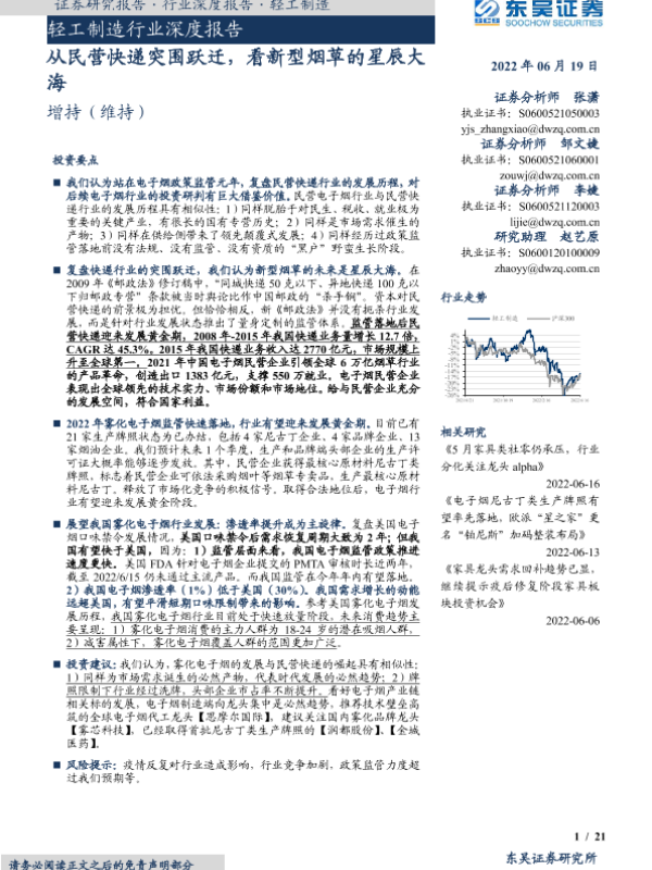 【东吴证券】【20220619】轻工制造行业深度报告-从民营快递突围跃迁,看新型烟草的星辰大海-21页 行业研究