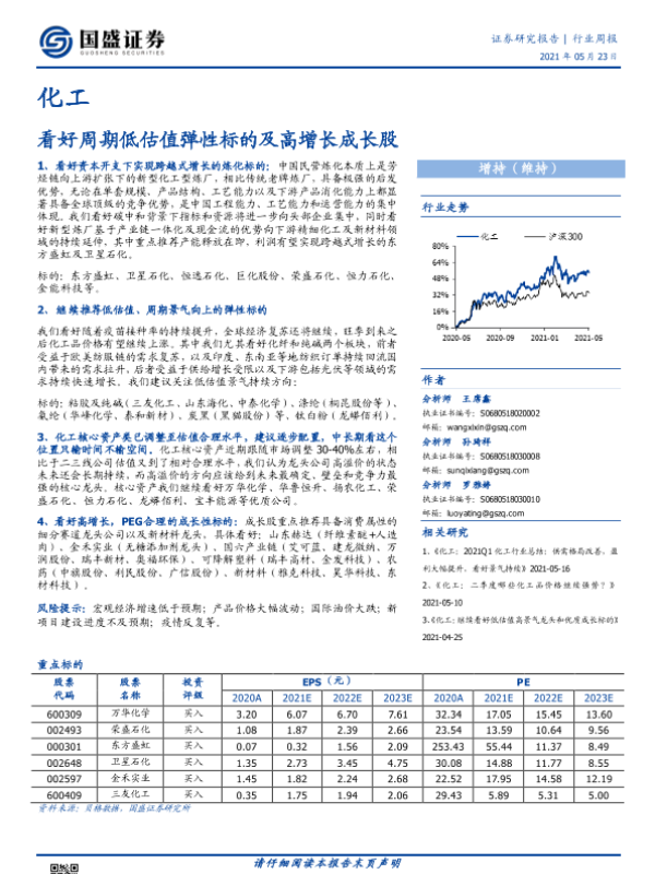 【国盛证券】【20210523】20210523-国盛证券-化工行业周报:看好周期低估值弹性标的及高增长成长股-8页 行业研究