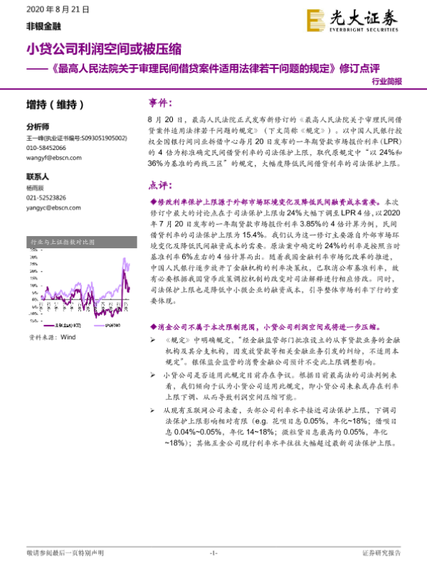 【光大证券】【20200821】《最高人民法院关于审理民间借贷案件适用法律若干问题的规定》修订点评:小贷公司利润空间或被压缩-5页 行业研究