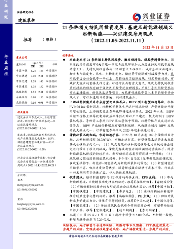 【兴业证券】【20221113】21条举措支持民间投资发展,基建及新能源领域又添新动能-43页 行业研究