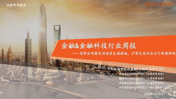 【平安证券】【20220619】金融&金融科技行业周报:国常会部署民间投资支持措施,沪深交易所出台可转债新规-17页 行业研究