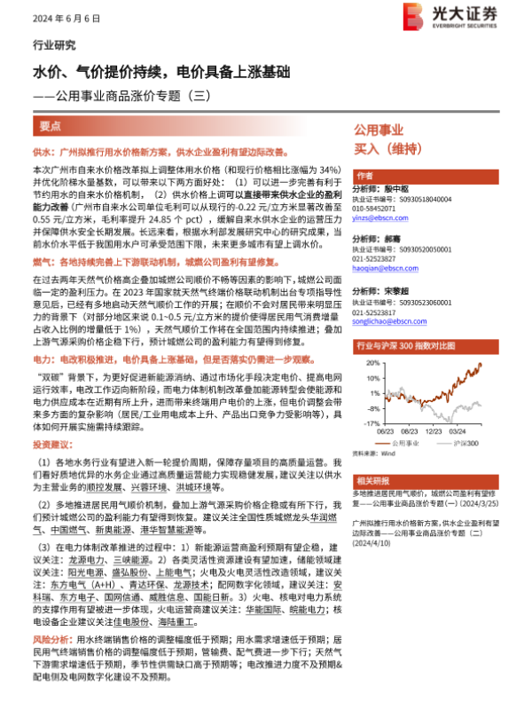 【光大证券】【20240606】公用事业商品涨价专题(三):水价、气价提价持续,电价具备上涨基础-15页 行业研究