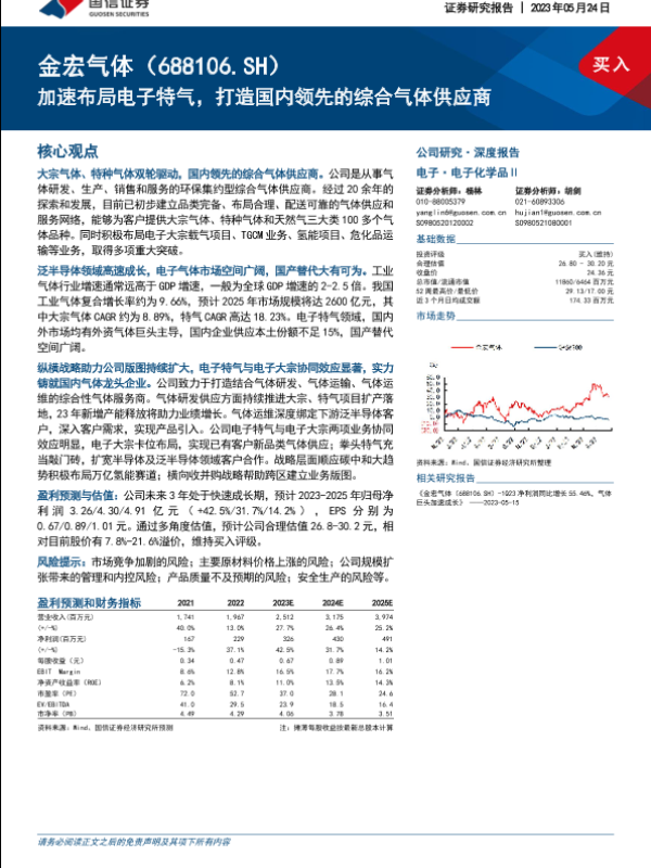 【国信证券】【20230524】金宏气体(688106)加速布局电子特气,打造国内领先的综合气体供应商-39页 行业研究
