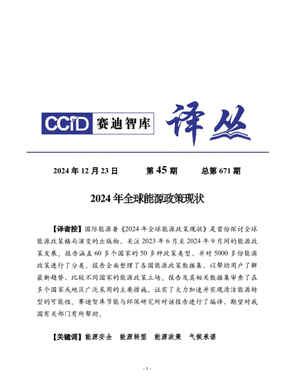 【赛迪智库节能与环保研究所】【20250108】2024年全球能源政策现状报告-20页 行业研究