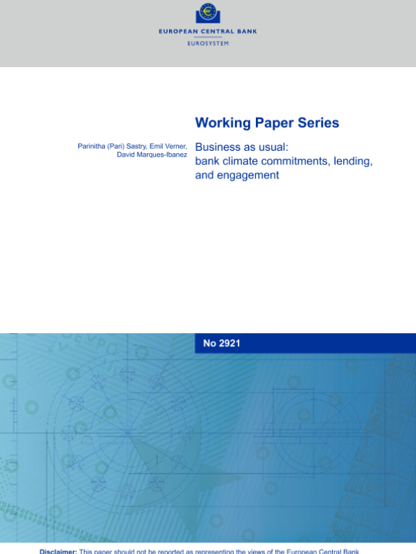 【European Central Bank (ECB)】【202403】Business as usual bank climate commitments, lending, and engagement-66页 学术论文