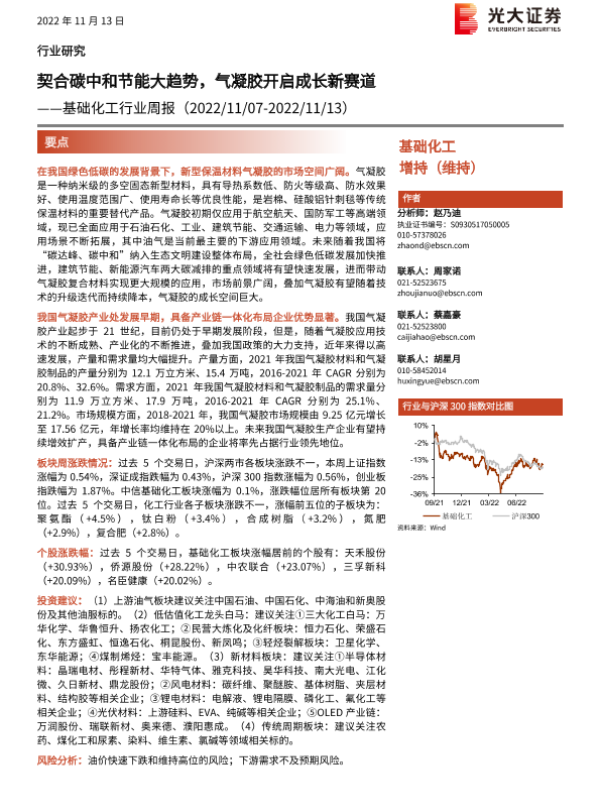 【光大证券】【20221113】契合碳中和节能大趋势,气凝胶开启成长新赛道——基础化工行业周报-32页 行业研究
