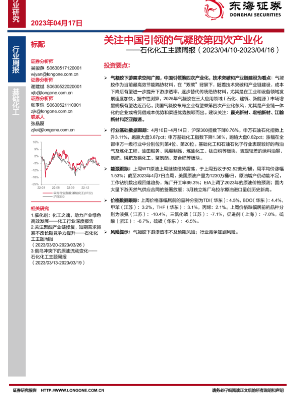 【东海证券】【20230417】20230417-东海证券-石化化工主题周报:关注中国引领的气凝胶第四次产业化-25页 行业研究