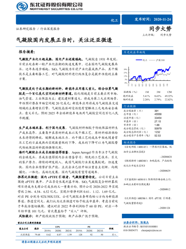 【东北证券】【20201124】气凝胶国内发展正当时,关注泛亚微透-48页 行业研究