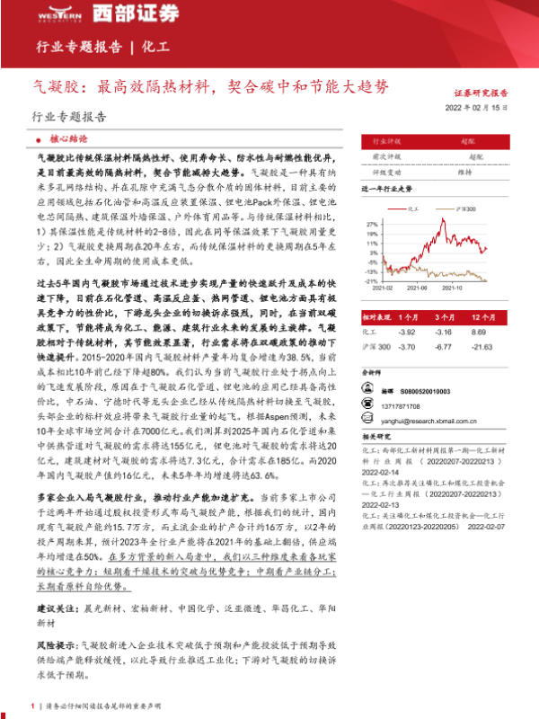 【西部证券】【20220215】化工行业专题报告:气凝胶,最高效隔热材料,契合碳中和节能大趋势-20页 行业研究