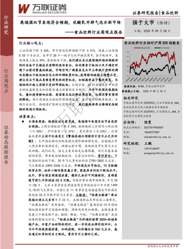 【万联证券】【20200928】20200928-万联证券-食品饮料行业周观点报告:高端酒双节表现符合预期,优酸乳开辟气泡水新市场-11页 行业研究