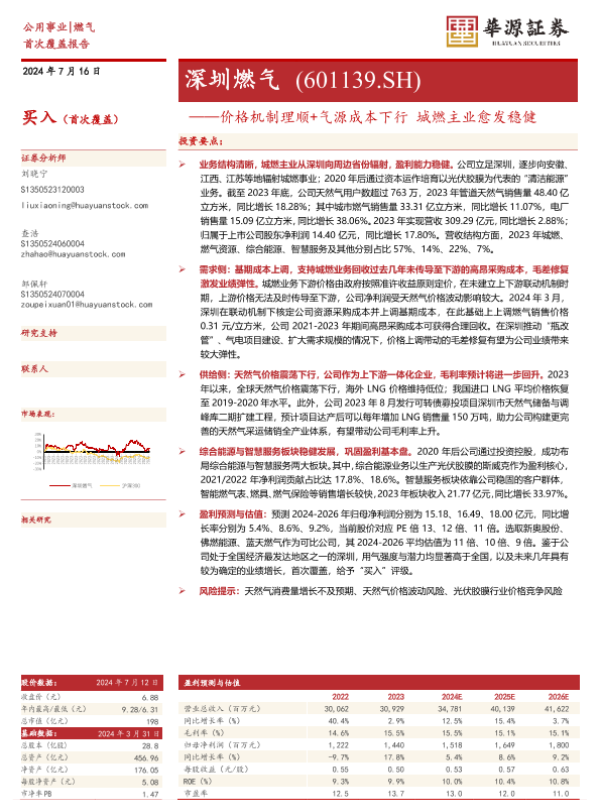 【华源证券】【20240716】深圳燃气(601139)价格机制理顺+气源成本下行,城燃主业愈发稳健-19页 行业研究