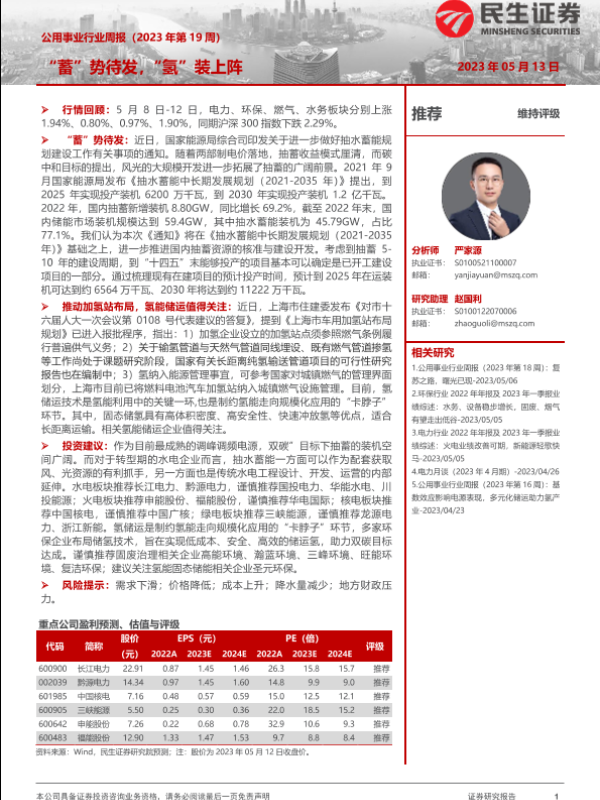 【民生证券】【20230513】公用事业行业周报(2023年第19周):“蓄”势待发,“氢”装上阵-29页 行业研究