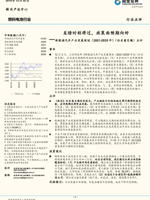 【国金证券】【20191203】新能源汽车产业发展规划(2021-2035年)(征求意见稿)点评:至暗时刻将过,政策面预期向好-6页 行业研究