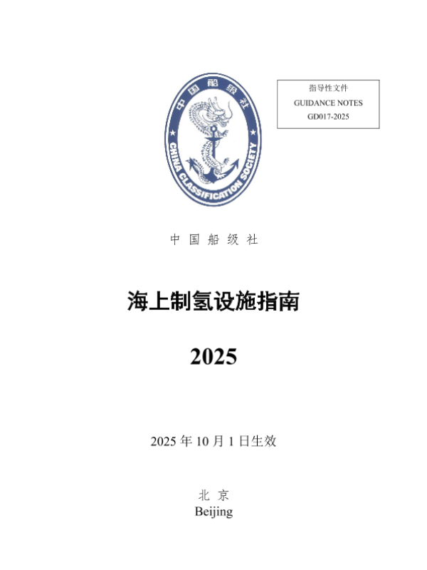 【中国船级社】【2025】海上制氢设施指南-55页 指南