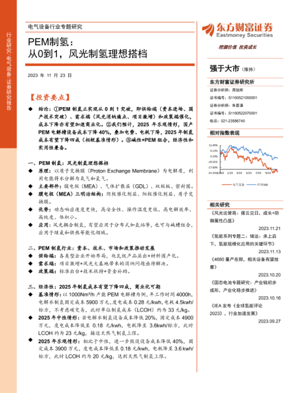 【东方财富证券】【20231123】电气设备行业专题研究:PEM制氢:从0到1,风光制氢理想搭档-24页 行业研究