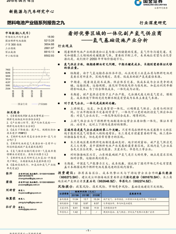 【国金证券】【20190616】燃料电池产业链系列报告之九:氢气基础设施产业分析:看好优势区域的一体化副产氢气供应商-36页 行业研究