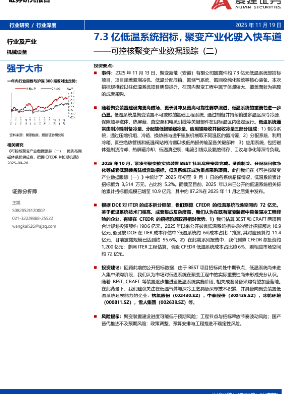 【爱建证券】【202511】机械设备行业可控核聚变产业数据跟踪(二):7.3亿低温系统招标,聚变产业化驶入快车道-15页 证券期货研究报告
