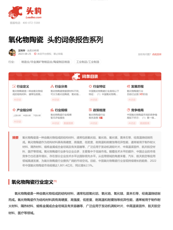 【头豹研究院】【20231023】氧化物陶瓷 头豹词条报告系列-20页 行业研究