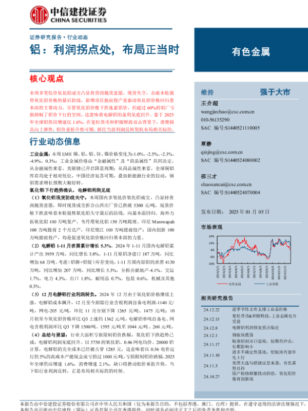 【中信建投证券】【20250105】2025年01月20日更新-【中信建投】有色金属行业动态:铝,利润拐点处,布局正当时-12页 行业研究