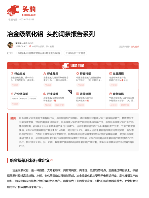 【头豹研究院】【20231030】冶金级氧化铝 头豹词条报告系列-19页 行业研究