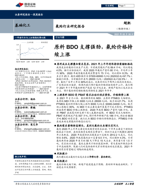 【国信证券】【20210226】基础化工-氨纶行业研究报告:原料BDO支撑强劲,氨纶价格持续上涨-16页 行业研究